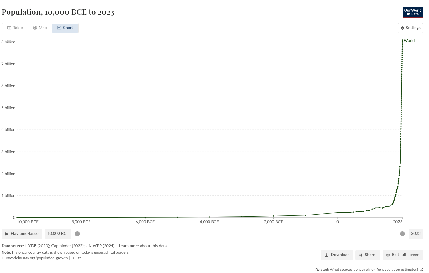 Paradoxically, this also happened while the total number of humans on this planet exploded. Indeed, I will make the case that poverty shrank because, not despite, our growing numbers. We can see our population begin to rise with the agricultural revolution, but again, fail to truly “take off” until the Industrial Revolution.