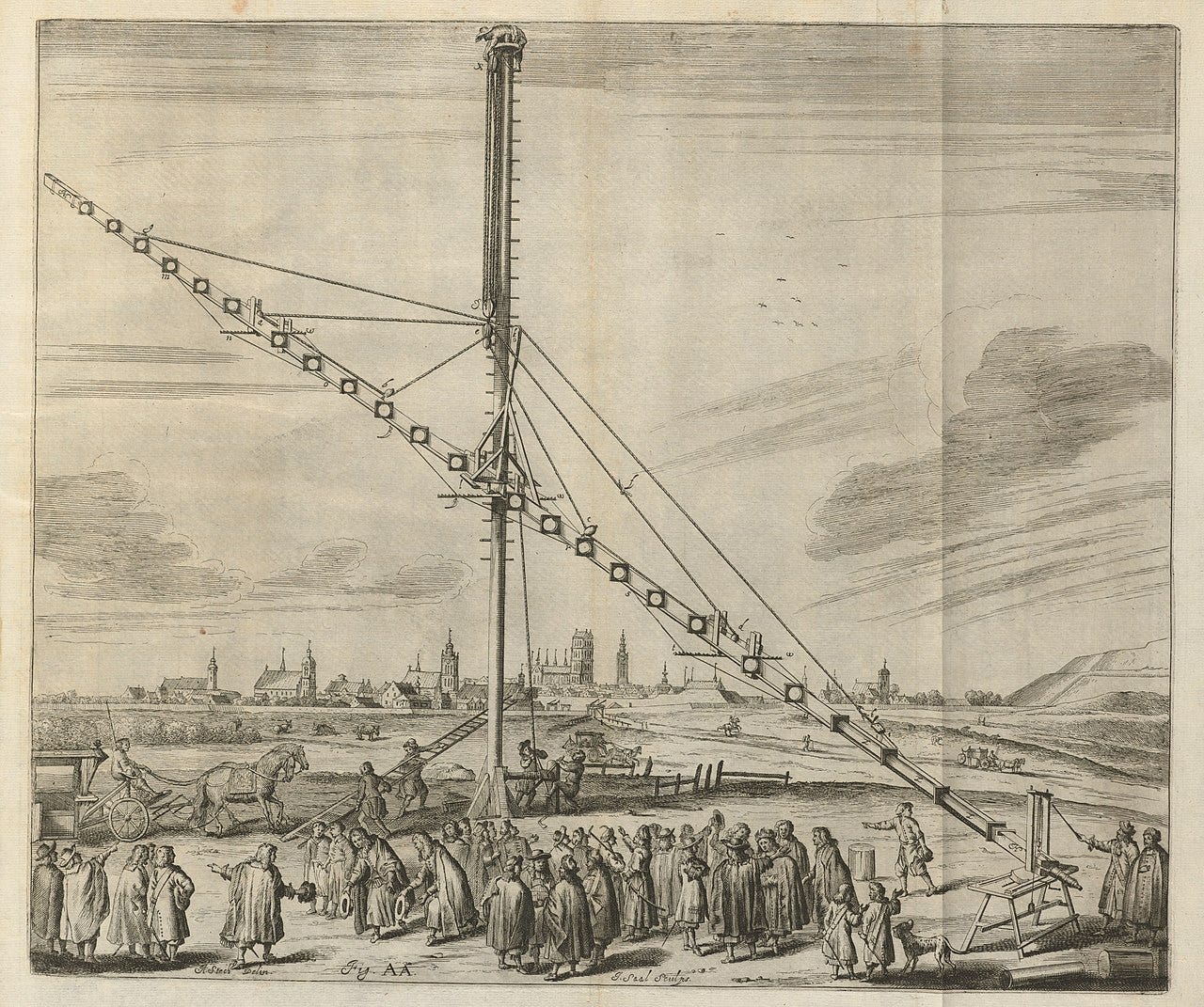 Subsequent astronomers would continue pushing the limits of telescope technology, but they ran into physical limitations. Early refracting telescopes used single-element objective lenses, meaning they had extremely high focal lengths. With every doubling of the aperture diameter, the focal length quadrupled, and, as a consequence, telescopes quickly grew unwieldy. By the end of the 17th century, the largest lenses were some 22 cm across, and telescopes grew so long that, in some cases, the objective lens had to be mounted on a tall pole or building with the eyepiece connected to it via a string.